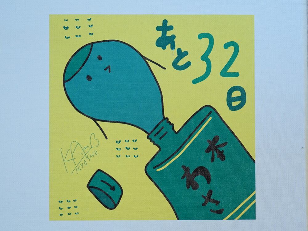 2023年7月23日日比谷野外音楽堂で行われた「結成20周年記念 鶴の野恩返し〜みんなにワイワイお祝いしてもらう会〜」に向けて神田KYOSHO雄一朗が毎日!カウントダウン描き下ろしを行っていた「鶴ちゃん」の1作。
