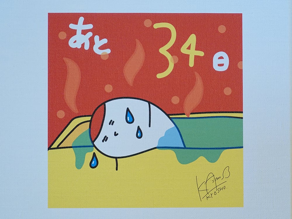 2023年7月23日日比谷野外音楽堂で行われた「結成20周年記念 鶴の野恩返し〜みんなにワイワイお祝いしてもらう会〜」に向けて神田KYOSHO雄一朗が毎日!カウントダウン描き下ろしを行っていた「鶴ちゃん」の1作。