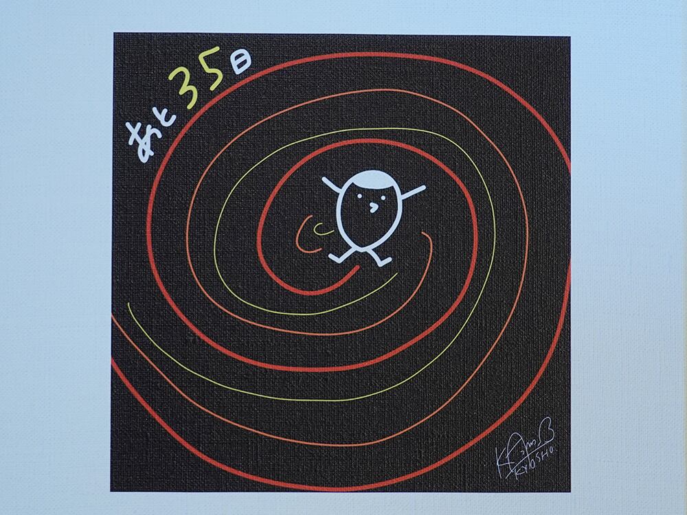 2023年7月23日日比谷野外音楽堂で行われた「結成20周年記念 鶴の野恩返し〜みんなにワイワイお祝いしてもらう会〜」に向けて神田KYOSHO雄一朗が毎日!カウントダウン描き下ろしを行っていた「鶴ちゃん」の1作。